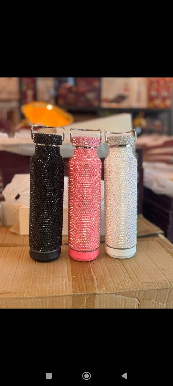 800 ml. Çelik. Renkli, taşlı, Bluetooth hoparlörlü termos. Siyah, pembe ve beyaz renklerde, parlak taşlarla süslenmiş renkli çocuk termosları. Taşıma kolaylığı için kulplu.