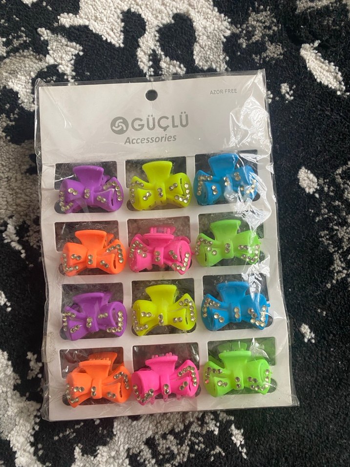 Güçlü Accessories markasına ait, taşlı detaylı renkli plastik saç tokaları, moda ve avangart tarz için uygundur. ✨