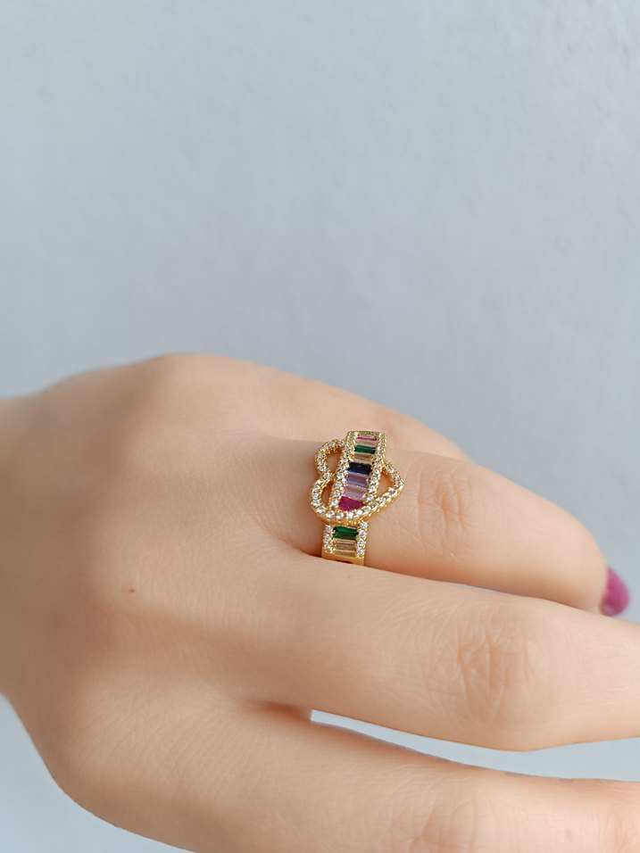 Renkli taşlı kalp model Kadın Yüzük