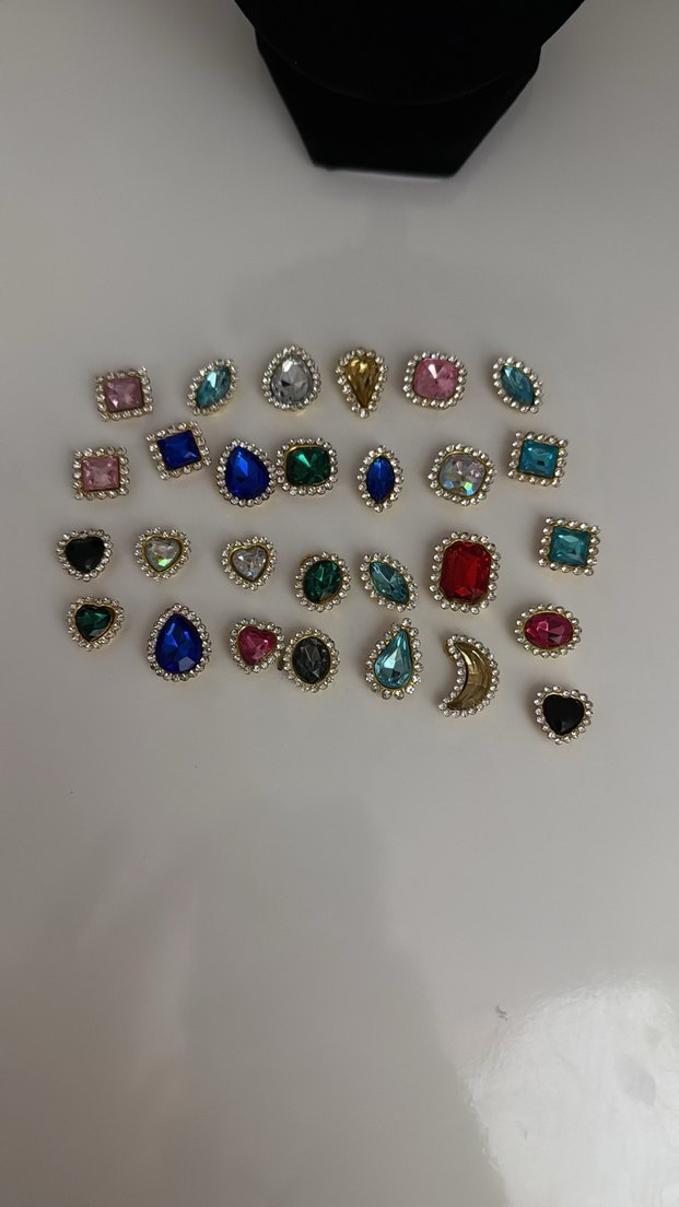 Altın renkli kenarlara sahip, çeşitli şekillerde ve açık renkli taşlarla renkli kolye yapılıp gönderilicek çelik satın almadan önce ilan açtırın .