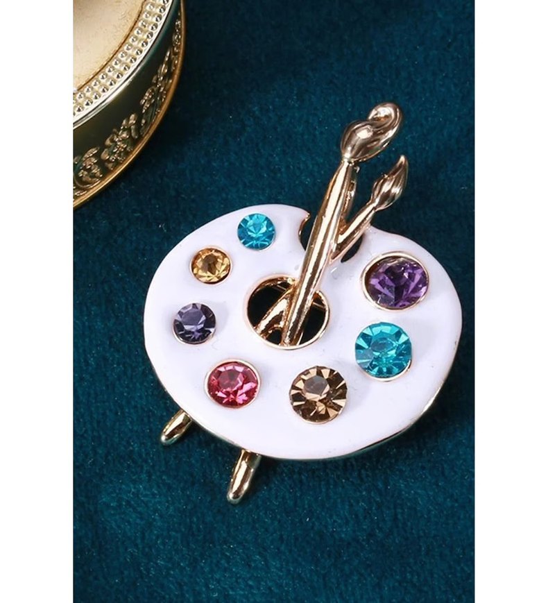 Renkli Taşlı Ressam Palet Broş