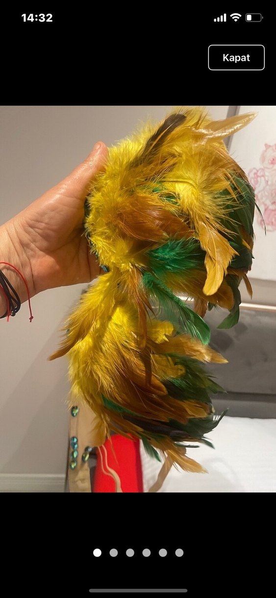 Canlı renklerde sentetik tüylerden yapılmış taşların bir kısmı düştü ama kolayca yapıştırılabilinir. iki gün kullanıldı sadece festivalde özel günlerde kullanım için. Üstünde oynama yapılabilinir