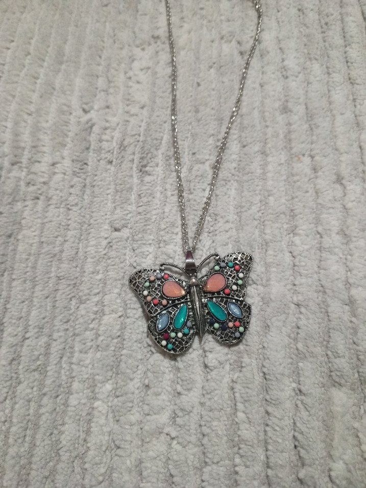 olta tası uzun kolye, renkli boncuklar ve nakış desenlerle süslenmiş kelebek kolyeye sahiptir. Bohem tarzını yansıtır, günlük kullanıma uygundur.