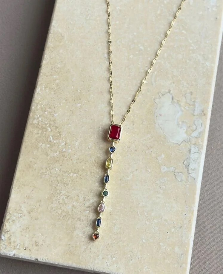 Renkli Taşlı Uzun Zincir Kolye