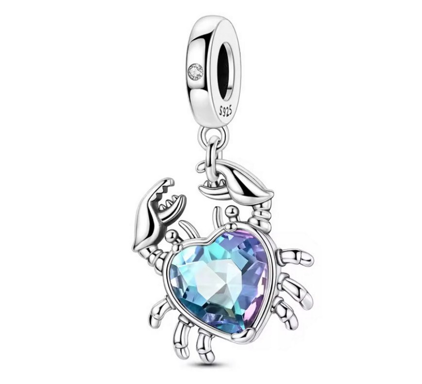 Renkli Taşlı Yengeç Figürlü Gümüş Charm