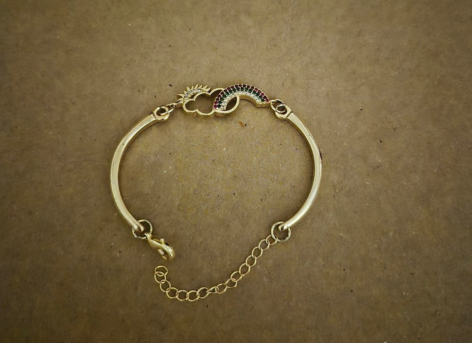 Renkli Taşlı Zincir Detaylı Altın Rengi Bileklik