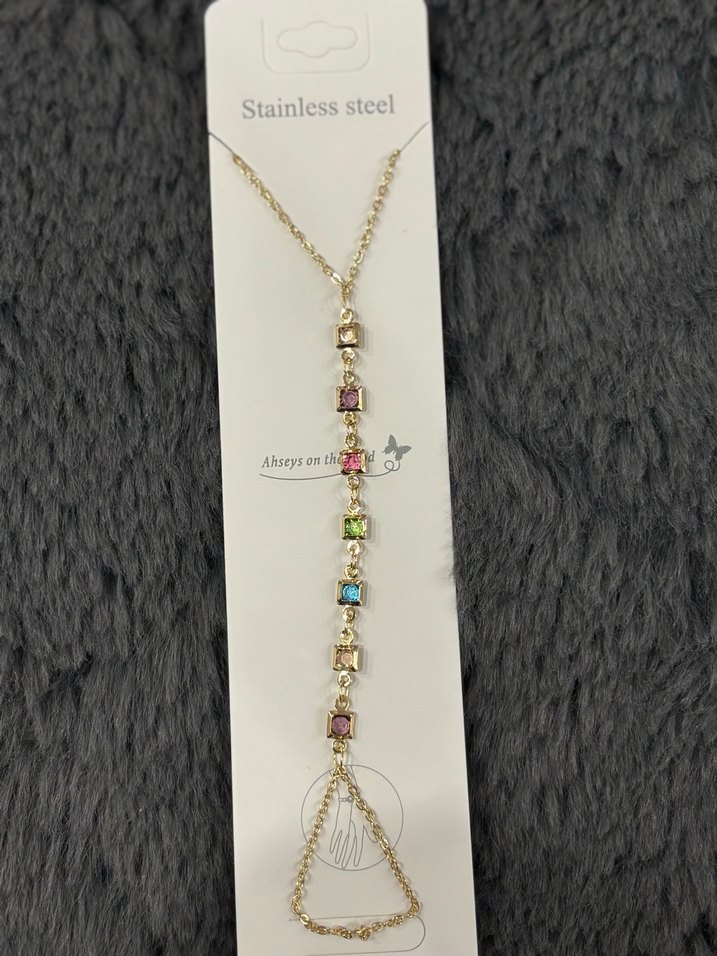Renkli Taşlı Zincir Detaylı Kadın El Zinciri