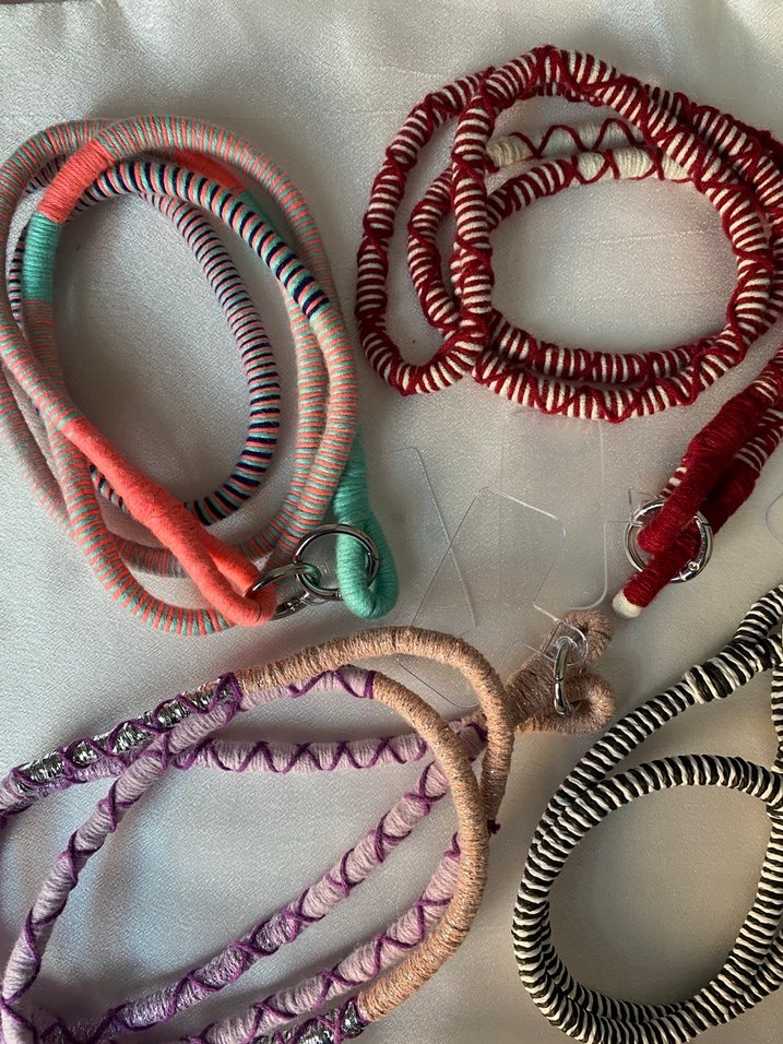 Farklı renklerde ve desenlerde telefon askıları