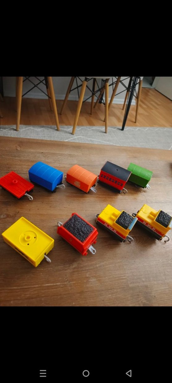 Farklı şekil ve renkte plastik tren vagonlarından oluşan renkli bir settir. Her parça kolayca bağlanabilir ve oyun için uygundur.