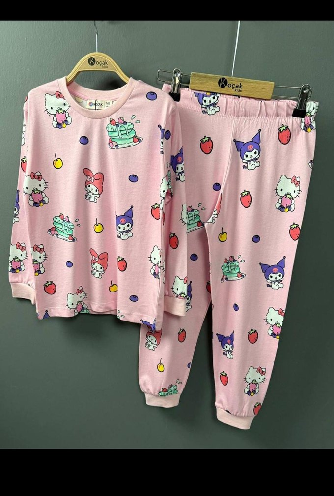 Pamuklu, pembe renkli çocuk pijaması, renkli tie-dye desenli ve sevimli karakterlerle meyve baskılıdır. Rahat ve yumuşak uyku kıyafeti.SIPARIS ONCESI BEDEN SORUNUZ!