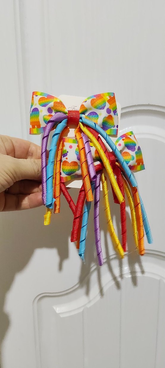 Renkli tie-dye desenli, fiyonk ve çoklu bükümlü şeritlere sahip saç tokası, bohem ve retro tarzını yansıtıyor.