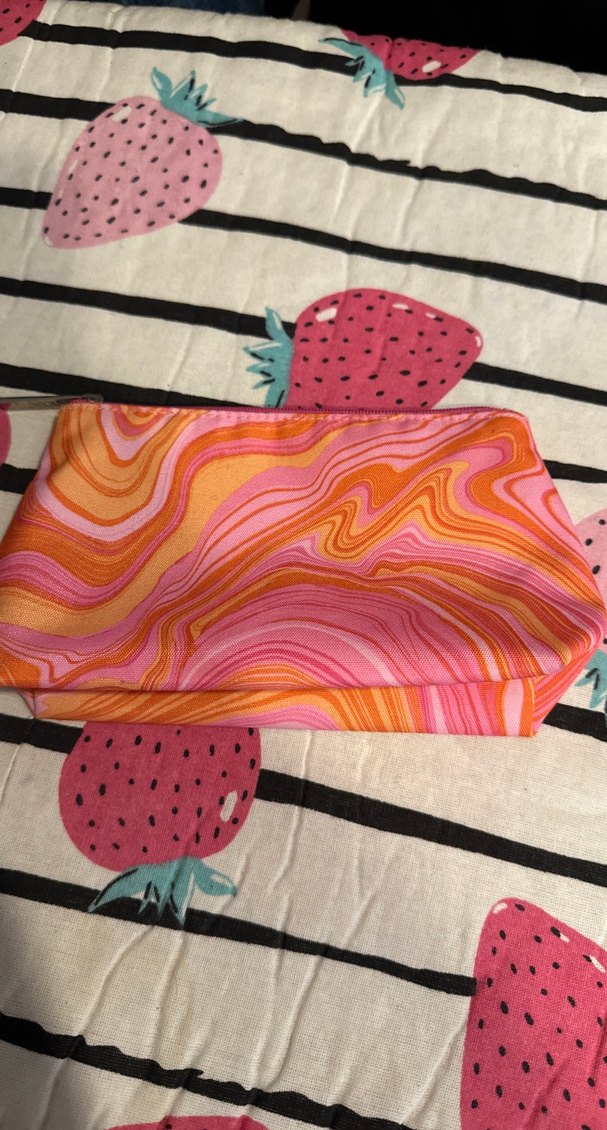 Sentetik kumaştan, renkli tie-dye desene sahip, fermuarlı kadın makyaj çantası. Bohem ve retro tarzını yansıtır, günlük kullanıma uygundur.