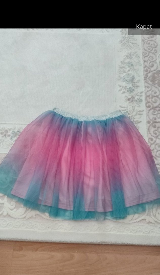Renkli tie-dye desenli, bol kesim kız çocuk eteği, fırfır detaylı ve yumuşak sentetik kumaştan üretilmiştir. Bohem tarzına uygundur.Bazı kısımlarda kusurları var resimde belirtildi