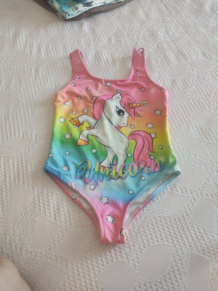 Renkli Tie-Dye Unicorn Desenli Kız Mayo