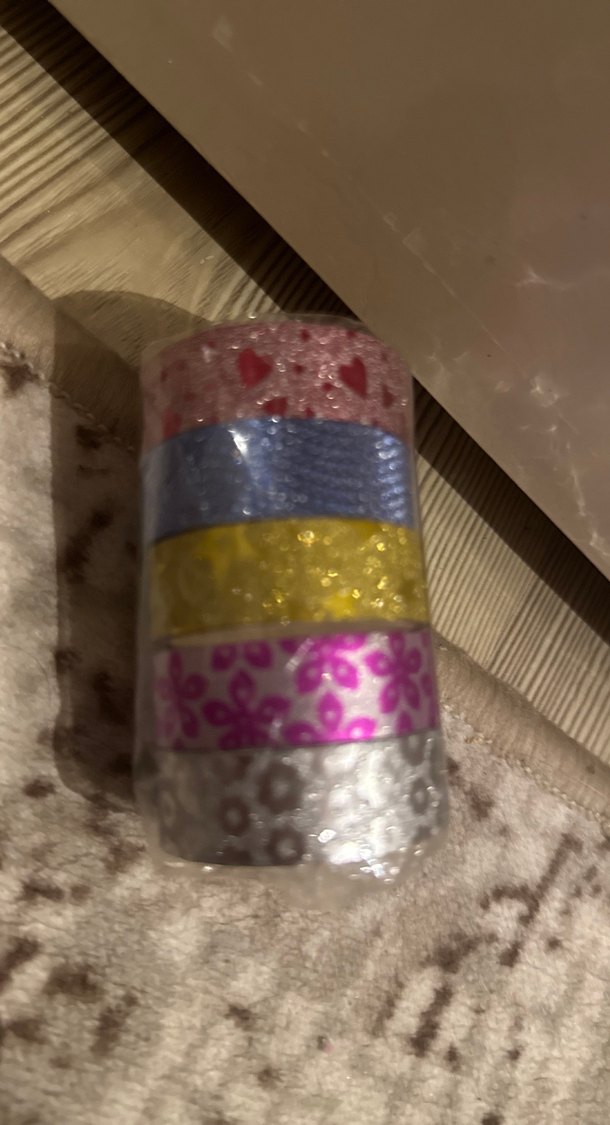 Hiç kullanılmadı. Beş adet Kalp ve çiçek desenli çeşitli renklerde metalik simli bant