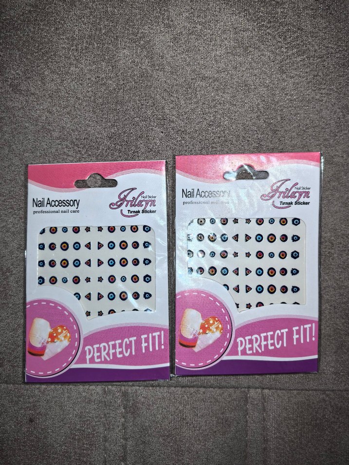 Çeşitli desenlere sahip renkli tırnak stickeri Fiyat ikisinin toplamıdır
