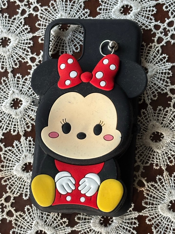 I phone 11 kılıf , hiç kullanılmamıştır Renkli ve tokalı bu telefon kılıfı, kırmızı puantiyeli fiyonk takmış sevimli karakterle goth tarzını yansıtıyor.