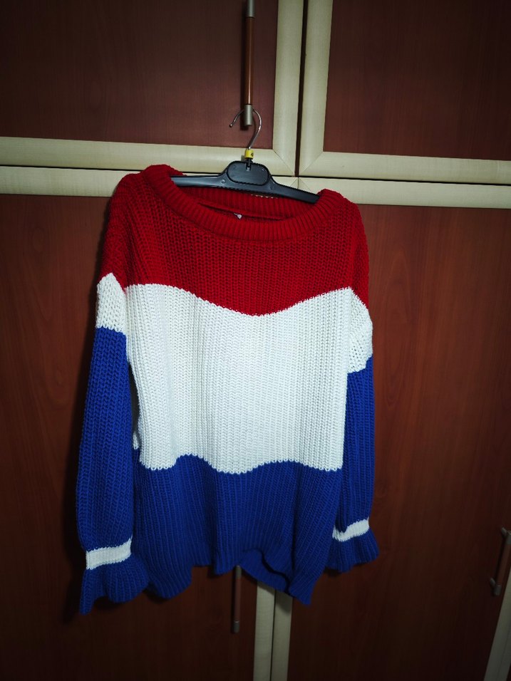 Renkli triko kadında uzun kollu, yuvarlak yaka ve bol kesim rahat bir kullanıma sahip. Midi boyu ve yumuşak örgü kumaşıyla günlük kullanım için uygundur.