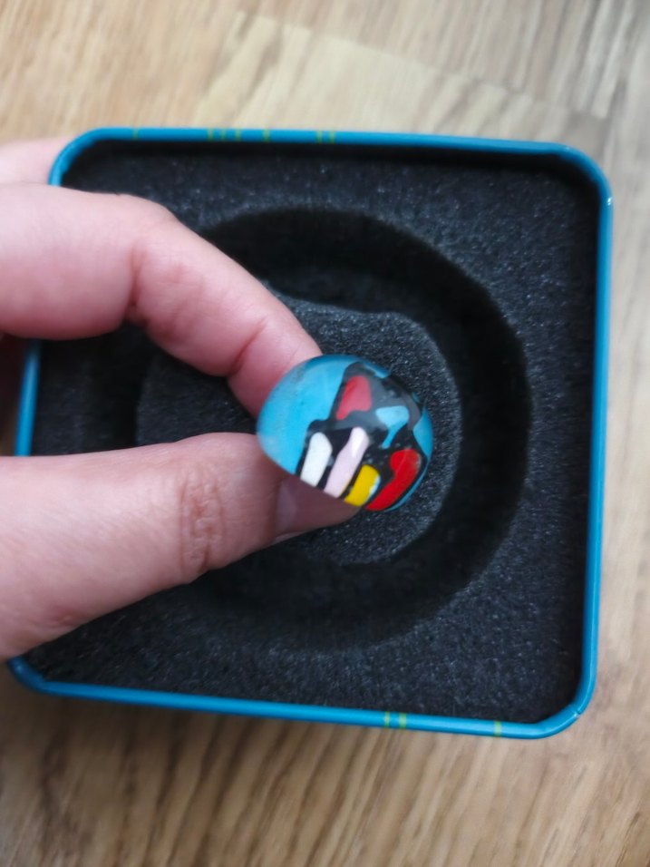 Canlı ve soyut desenli renkli turkuaz yüzük farklı bir malzemesi var