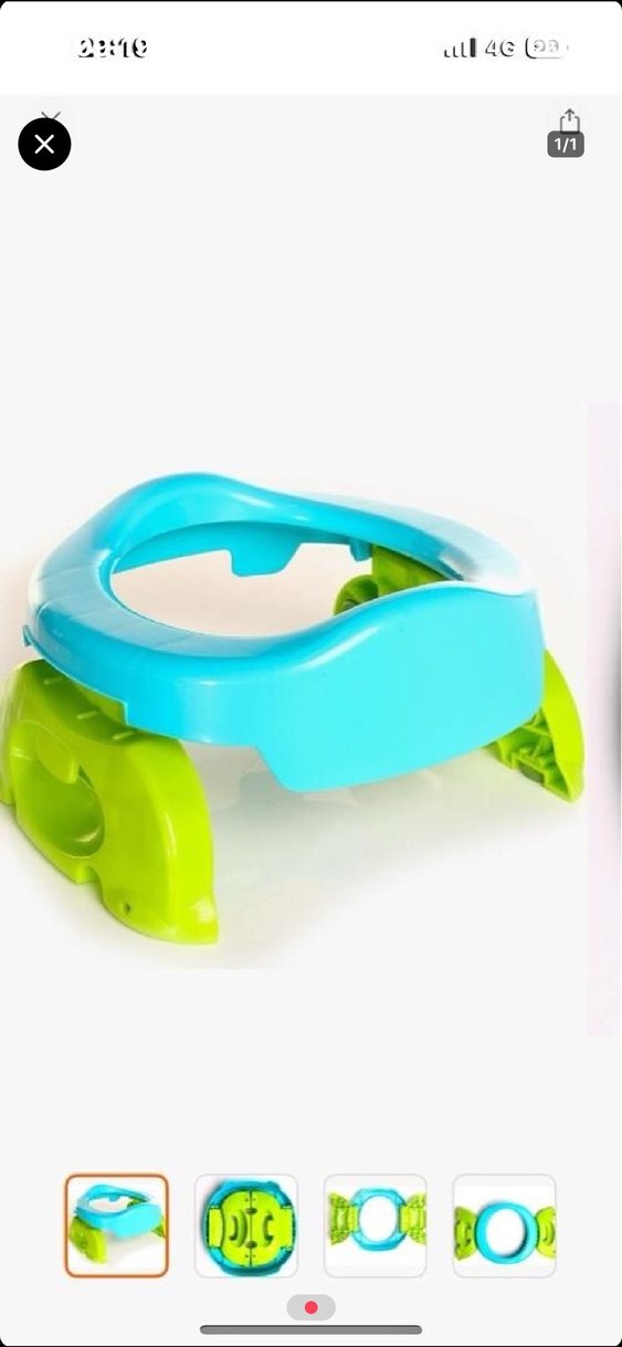 Turkuaz ve yeşil renklerde, bebeklerin heryerde kolayca tuvalet öğrenimini destekleyen renkli bebek portatif lazımlık