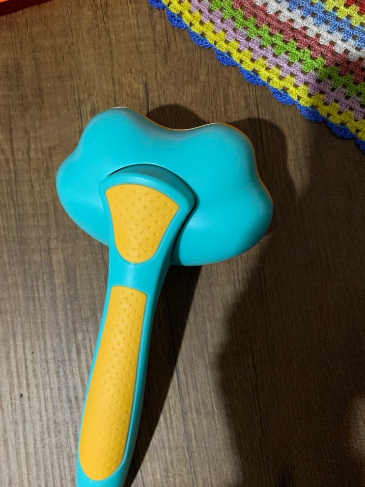 Renkli turkuaz kedi tüy toplayıcı fırça, sarı tutma yerleriyle rahat kullanım sağlar. Hiç kullanılmadı.