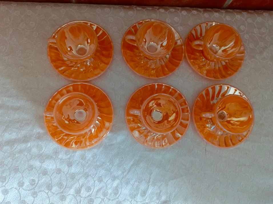Renkli Turuncu Cam Fincan ve Tabağı Seti