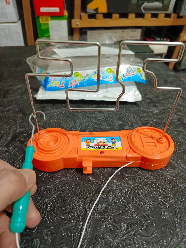 Renkli turuncu eğitim oyuncağı, metal yollar üzerinde gezdirilen küçük bir çubukla oynanan tel labirent oyunudur. El-göz koordinasyonunu geliştirir.