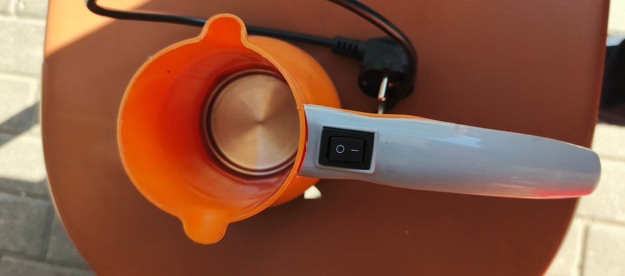 Renkli turuncu elektrikli su ısıtıcısının paslanmaz çelik iç yüzeyi ve kullanımı kolay açma/kapama düğmesi vardır. Kompakt tasarıma sahiptir. sıfır üründür
