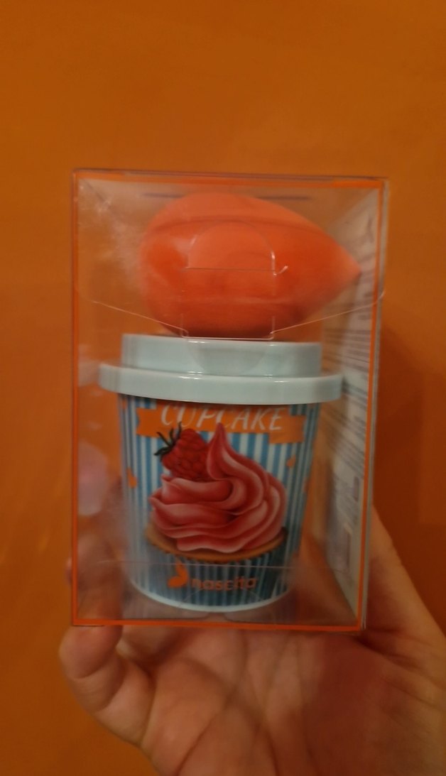 Makyaj uygulaması için cupcake şeklinde renkli turuncu makyaj süngeri.