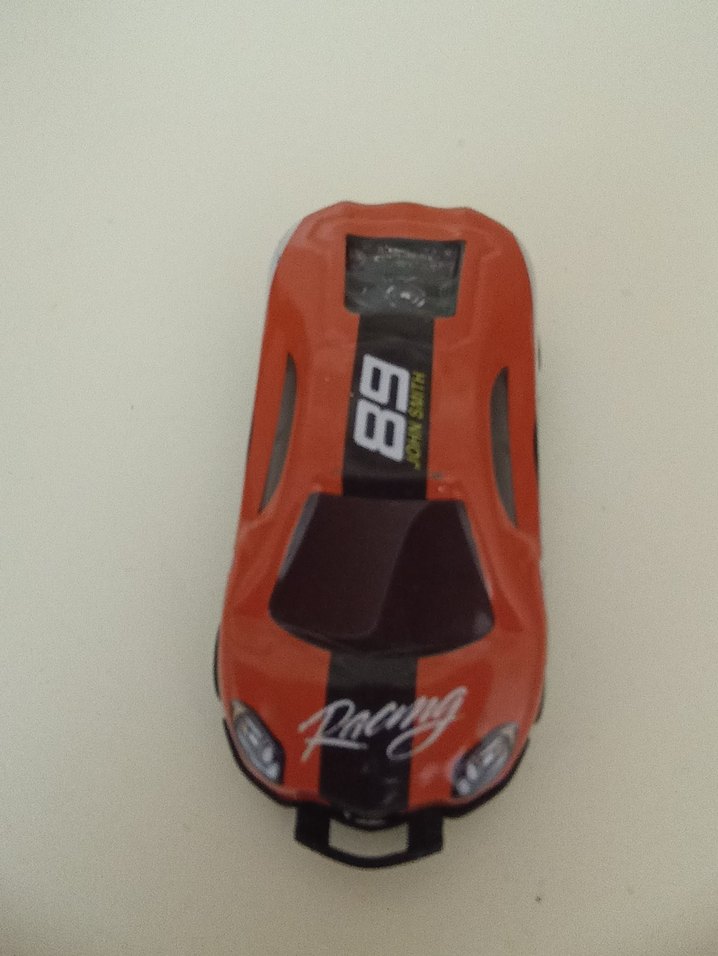 Yarış desenli, kompakt tasarımlı renkli turuncu oyuncak araba. Oyun zamanı için uygun.