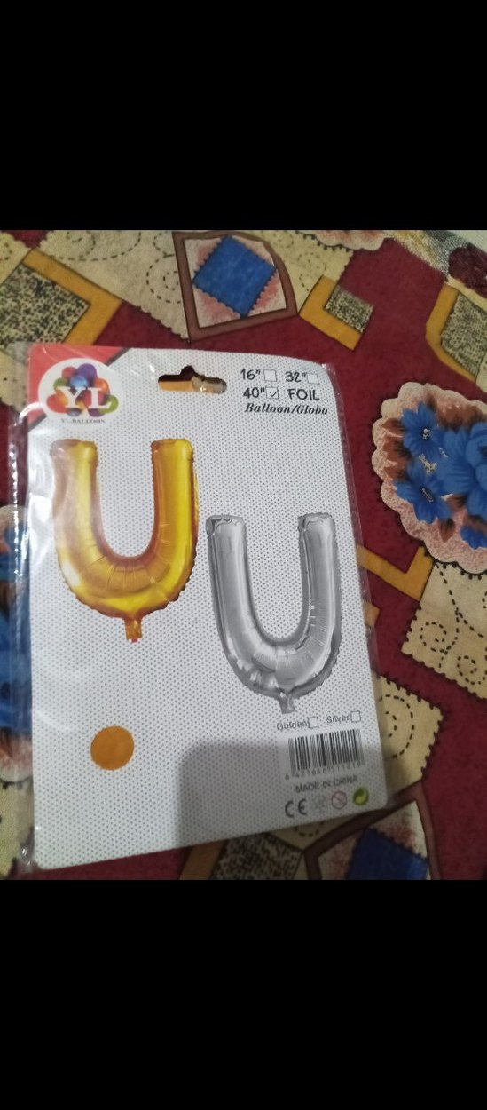 Altın ve gümüş renklerde, 40 cm boyunda U harfi şeklinde renkli folyo balonlar.