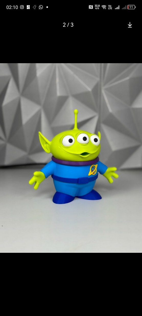 Mavi uzay kıyafeti ve gezegen amblemiyle renkli, üç gözlü uzaylı aksiyon figürü. Canlı yeşil renkte ve eğlenceli ifadeye sahip.