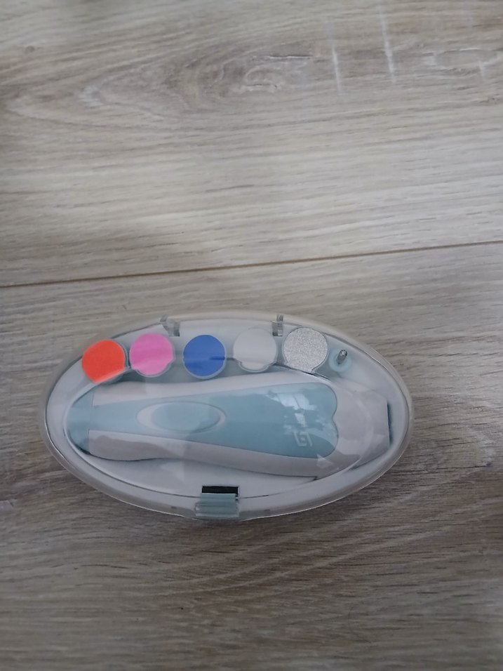 Renkli uçlu, şeffaf kutuda kompakt elektrikli manikür seti, kolay tırnak bakımı sağlar. bebekler içindir sıfır kullanmadık