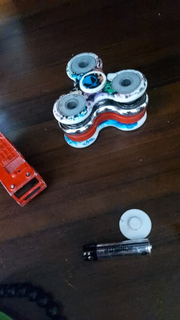 Üç kollu, renkli ve pürüzsüz dönen bir fidget spinner. Pil ve beyaz yuvarlak kapak aksesuarı ile birlikte. adet fiyatı