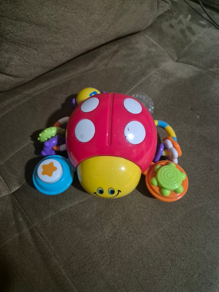 Rengarenk uğur böceği şeklinde diş kaşıyıcı ve çıngırak, bebeğin ilgisini çeken farklı dokular ve şekiller içerir. Diş etlerini rahatlatmaya yardımcı olur.