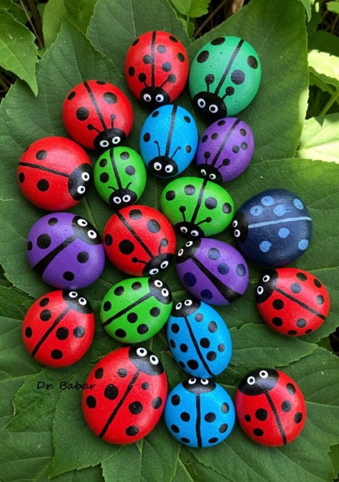 Canlı renklerde, çok renkli uğur böceği taş süsleri, evinize bahçenize neşeli bir dokunuş sağlar.