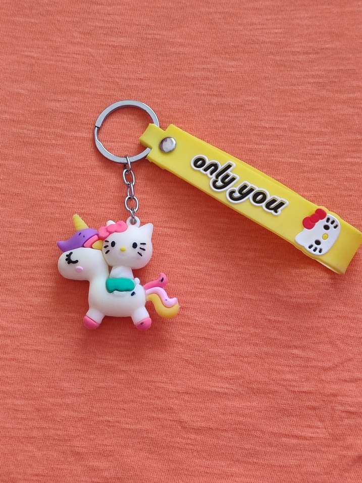 Sarı bant üzerinde 'only you' yazılı, renkli unicorn figürlü anahtarlık. Rock punk ve minimalist tarzlara uygundur.