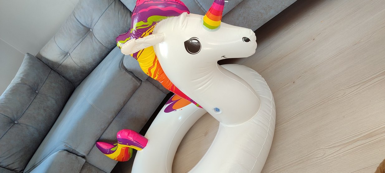Canlı renklerde, gökkuşağı desenli unicorn şişme su oyuncağı. Eğlenceli ve renkli tasarımıyla dikkat çeker. Sağlam son fiyat