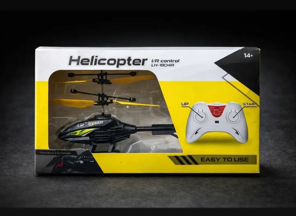 Renkli, kolay VR kumandalı LH-1804R model uzaktan kumandalı helikopter oyuncak. Sarı kumandası ile kolay kullanım sağlar.