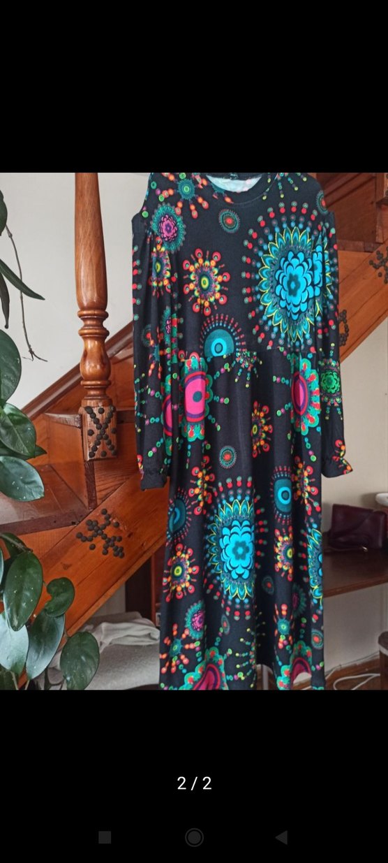 uzun kollu, bol kesim ve canlı renkli desenlere sahip penye kumaştan yapılmış bohem elbise. Yuvarlak yakalı ve günlük kullanım için uygundur. göğüs 64 boy 81 kol 42