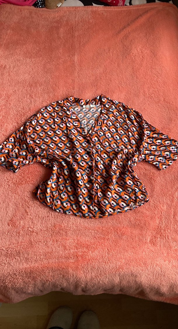 Renkli, kısa boy bohem gömlek, V yaka ve düğmeli ön detaylara sahiptir. Uzun kollu ve bol kesimdir, yumuşak tekstil malzemeden üretilmiştir, rahat günlük kullanım için uygundur. Omuzdan boy:52 düşük omuzdur salaş model bir kere giyildi hiçbir sorunu yok