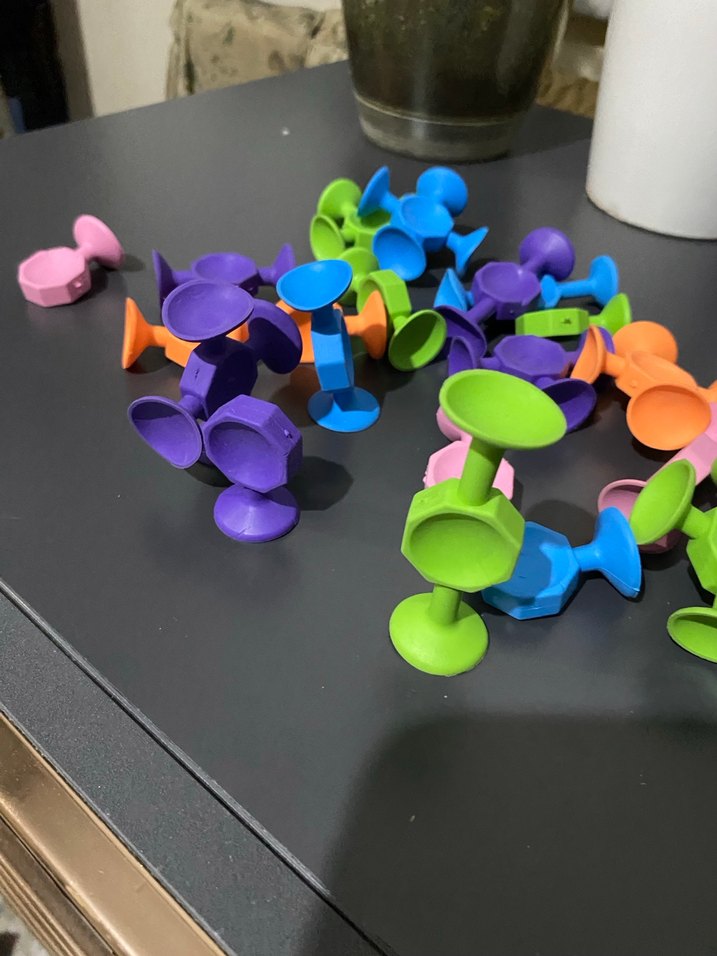 Yaratıcılığı ve ince motor becerilerini geliştiren renkli vakumlu eğitim oyuncakları. 20 adet vardır