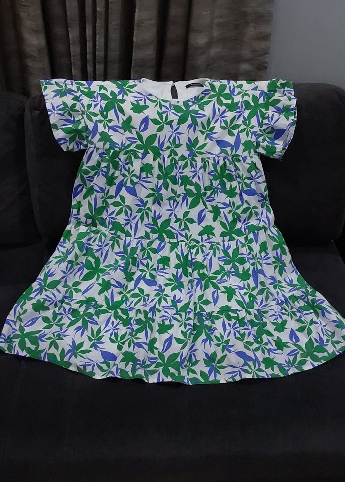 Kısa kollu, bol kesim ve renkli yaprak deseniyle. Bedeni 38 ama 40-42 beden rahat giyer, hamileler tercih edebilir, doğumdan önce ve sonra baya işinize yarar.