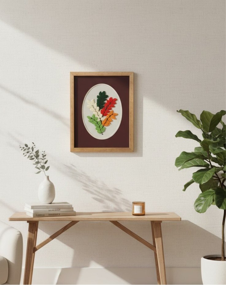 "Renkli Çiçekler" Punch Tablo by Bucu Mucu Tamamen el işçiliği (punch nakışı) ile özenle hazırladığım bu yaprak desenli tablo, canlı renkleri ve dokusuyla evinize modern ve doğal bir hava katacak. Naturel ahşap görünümlü şık çerçevesi ve eseri öne çıkaran bordo paspartusu ile oldukça estetik ve kaliteli bir duruşa sahiptir. Oval formuyla da klasikleşmiş dikdörtgen tablolardan ayrışır, mekanınıza özgünlük katar. • Boyut: 37x30 cm • Teknik: %100 El Yapımı Punch Nakışı • Çerçeve: Naturel ahşap görünümlü çerçeve + Bordo iç paspartu • Form: Oval iç tasarım • Durum: Yeni, kusursuz ve asılmaya hazır Salon, yatak odası, mutfak veya çalışma odası gibi farklı alanlarda kullanıma uygundur. Sevdikleriniz için de anlamlı ve kalıcı bir hediye alternatifi olabilir. Bu ürün tek ve özel tasarımdır. Hemen sepete ekleyin! #punchtablo #elemeği #yaprakdesen #duvardekoru #tablo #sanat #gardrops #hediyelik #evdekorasyonu #tasarımtablo #handmade #ovalçerçeve #doğaldesen #punchneedle