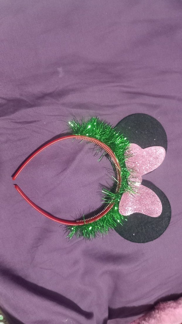 Pembe nakışlı yay ve yeşil süslemeli renkli çocuk saç bandı, rock punk tarzına uygun.