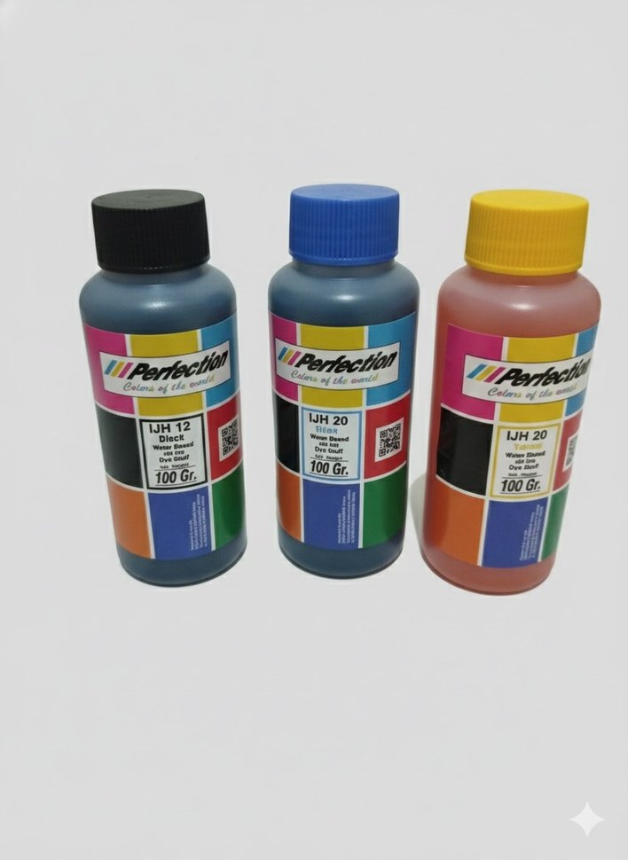 Perfection markalı, 100 gramlık renkli yazıcı mürekkebi şişeleri. JH20, JH2 ve 100G modelleri ile uyumludur. Siyah, mavi , sarı ve siyah renkleri içerir. ️ yarım Kalan siyah ve kırmızı renkleri de hediye göndereceğim