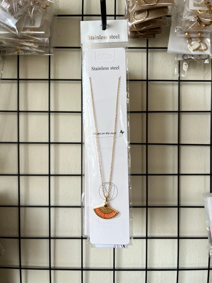 Renkli yelpaze kolye, detaylı zincir ve paslanmaz çelik malzemeye sahiptir. Bohem ve minimal tarzlar için uygundur. ✨