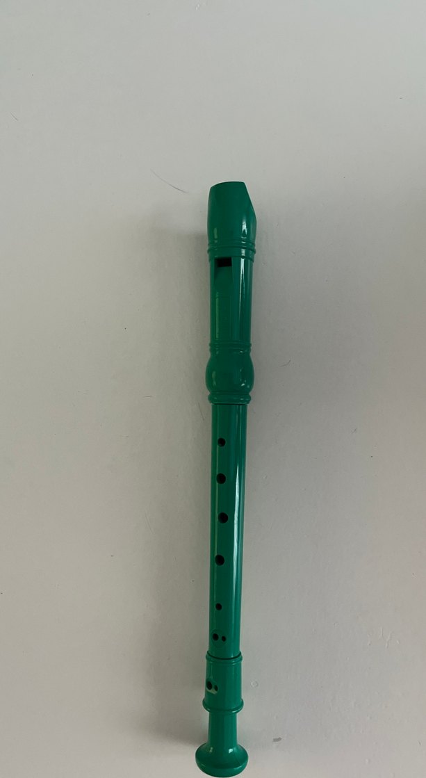 Pürüzsüz plastikten yapılmış, çeşitli notalar için çoklu delikli renkli yeşil blokflüt
