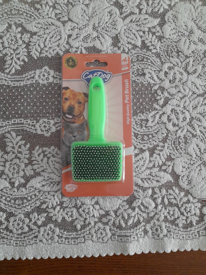 Renkli yeşil kedi ve köpek tüy fırçası, rahat sapı ve ince kıllarıyla tüy bakımına uygundur.