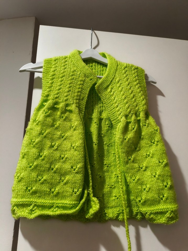 Renkli Yeşil Kız Örgü Yelek